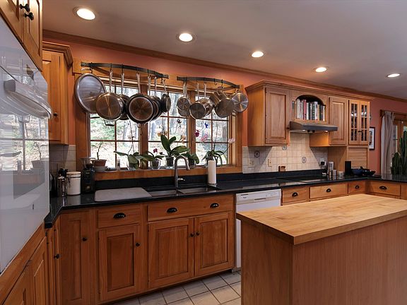 This home combines attractive craftsmanship, thoughtful design, and a practical layout throughout. A highly efficient woodstove (there is also radiant heating under the floor) makes the kitchen a warm haven, boasting not only Shaker-style red birch cabinetry but also a large walk-in pantry, quartz countertops, and an adjoining, matching laundry room. From the connecting family room, French Doors lead to a bluestone and brick patio with a great slate fire pit in a private backyard. The convenient first-floor primary bedroom has a walk-in closet plus a custom tiled bathroom with locally crafted cabinetry and a curbless walk-in shower. Completing the first floor are the dining room, living room featuring a large brick fireplace with custom mantel, and a hideaway office. Upstairs, a library (or play/study area) is flanked by two more bedrooms and a bath, as well as a large walk-in closet and two attic areas for possible expansions. The exterior boasts attractive cedar siding and a new roof, and the grounds feature stone retaining walls, mature plantings, and a woodland path leading (past a useful shed) into a 56-acre state-owned wildlife preserve. There is an oversized two-car garage along with a woodshed that could become a carport, boatport or other amenity. In the spotless basement, a large workshop (with included workbenches) leaves plenty of room for new owners to create a recreation room. Solar Panel Array Avail. for extra 12K. Delayed Showings 3/9/2024,Open House 11-2.