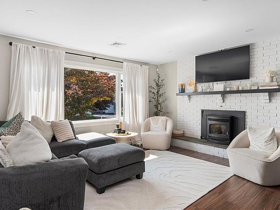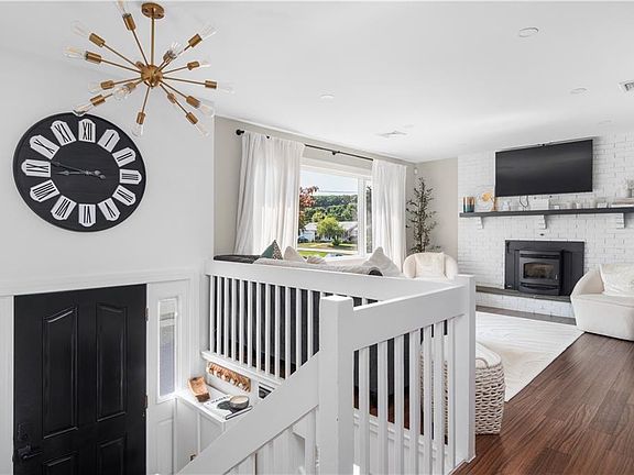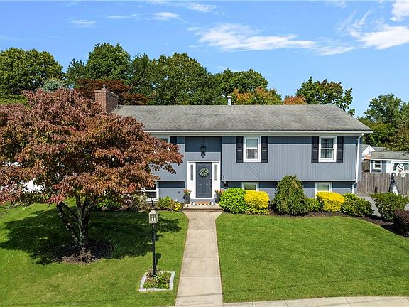 This 3-4 bedroom, 3-full-bath raised-Ranch style home in Cranston has experienced a stunning renovation to bring it completely up to date with tasteful style and smart enhancements. Crisp plantings lend curb appeal to the exterior. The open floor plan lets you and your guests move from the main entry, up the steps, and into the elegant, fireplaced living room with a floor-to-ceiling white brick surround and luminous picture window. The sleek, revamped kitchen has a welcoming center island, stone countertops, and new stainless steel appliances to let you cook with ease. Large barn-style doors open out to the family room with access to the rear deck. Down the hall, the primary suite boasts a large, walk-in closet and an ensuite bath with a dual-sink vanity. The lower level has been newly brought to life as a private living room/lounge with a full-size bar featuring handsome shelving and a professional wine fridge. Access to the attached 1-car garage and laundry add convenience, while walkout access opens to the pretty backyard. An additional bedroom and private full bath make this a truly crowd-pleasing home. 20 minutes to Providence and 15 minutes to the airport, the property is close to all the West Bay has to offer, from country clubs and Garden City shopping to marinas and delightful dining in coastal Edgewood.
