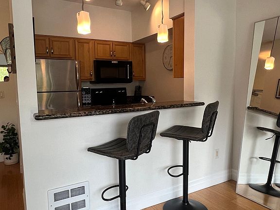 Prime Location in Fairhaven! Fully furnished second-floor studio condo boasting 9-foot ceilings, elegant bamboo flooring, and an exceptionally spacious balcony that looks out over Skylarks. The kitchen features luxurious granite slab countertops, maple cabinetry, a convenient double oven, and a raised bar. The expansive bathroom is adorned with granite accents and marble tile flooring, complete with a bath/shower enclosure. Added convenience with in-unit washer and dryer, plus secure underground parking in the prestigious building. All of this for only $1800 per month, with all utilities included except internet and TV. Experience the best of Fairhaven just minutes away from your doorstep! Perfect for a grad student or traveling professional. 9-month or 12-month lease available.