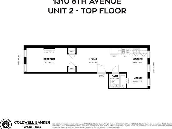 Beautiful sunset viewsEast-facing bedroomFlanking closetsGenerous cabinet storageDining alcoveSpacious and light-filled apartmentKitchen island