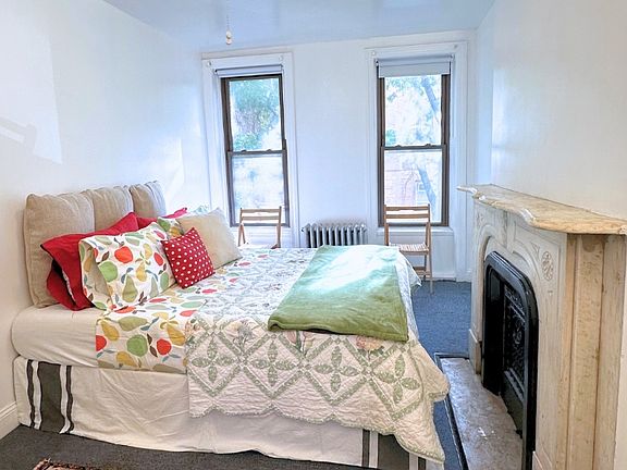 The east-facing bedroom welcomes bright morning sunlight and showcases a beautiful Italianate/Victorian marble fireplace mantle. With room for matching night stands, dressers, and even a chaise - this bedroom can truly become your cozy oasis. Two flanking closets provide excellent storage for your summer/winter wardrobe.