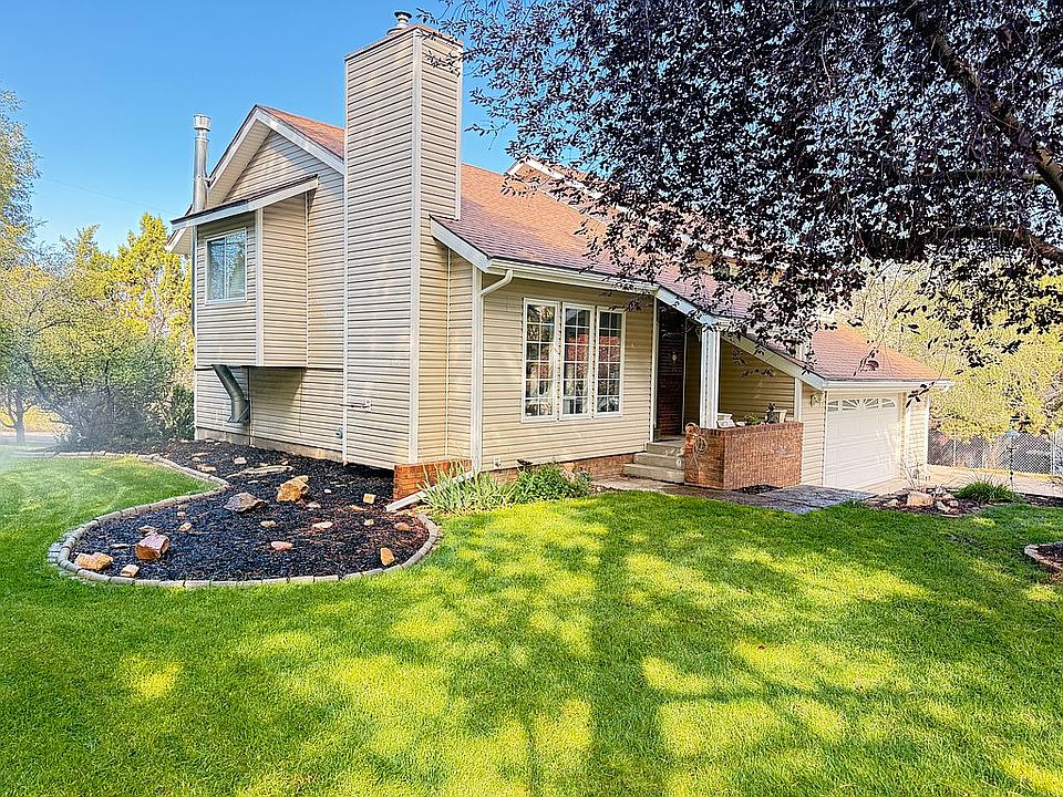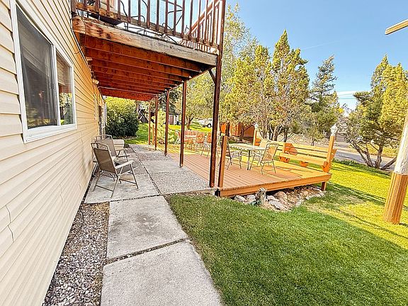 Beautiful and inviting split level home with vaulted ceiling to provide an open and spacious look and feel between the living room, kitchen and dining. Three bedrooms and two full bathrooms on the upper level. A family room, one bedroom and a full bath on the lower level. The rear includes a large uncovered deck with bench/lights for the lower level (great for entertaining) and an uncovered deck for the upper level with a covered patio below. The upper deck provides a view of the trees and mountains. Gas fireplace and gas stove. Full automatic sprinkler system and two storage sheds. Located on a 1/3 acre lot in the wooded area of Johnny Creek. Two of the bathrooms have been updated. The basement is perfect for an office or a theater room.