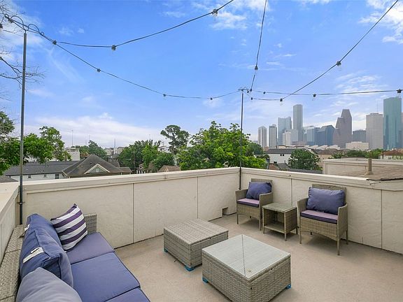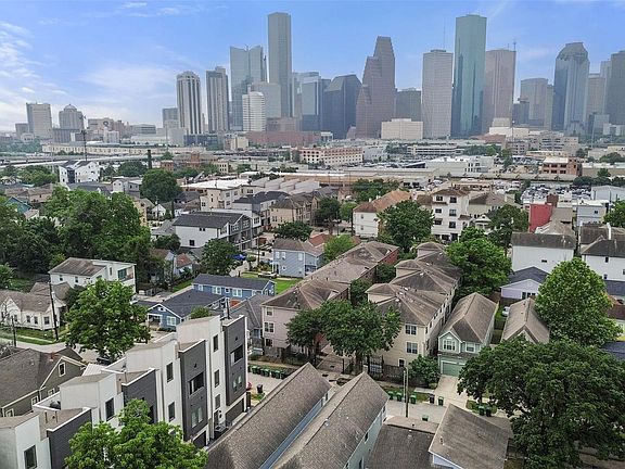 Gorgeous home with spectacular skyline views. This 4 story home has a rooftop deck overlooking downtown & is just over a mile from downtown, Minute Maid Park, the theatre district, restaurants, night life & more. The main living area features a functional open-concept design with abundant natural light, high ceilings & an island kitchen with beautiful contemporary finishes. The spacious primary suite encompasses the entire 3rd floor & has french doors that open to a private balcony, and a luxurious bath. The 4th floor opens to the rooftop deck plus it has a built-in serving bar with a beverage fridge, ideal for entertaining. 2 car attached garage. Don't miss this amazing home!