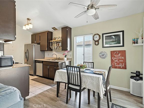 Welcome home to this beautifully maintained upper-level 1-bedroom, 1-bathroom condo located in the desirable Cabrillo Park community, within highly rated Tustin Unified School District. This bright and spacious home features high ceilings, abundant natural sunlight, and built-in Yamaha speakers for a modern touch of comfort, convenience and entertainment. . The upgraded kitchen includes stainless steel appliances, and the open-concept layout creates a seamless flow between living and dining spaces. A large bedroom with natural light and high ceilings. Enjoy two large private patios — one off the living room with treetop views perfect for soaking in the sun and another back patio off the dining area ideal for BBQ and pets. Residents enjoy resort-style amenities including a pool, spa fitness center, and clubhouse. Outdoor enthusiasts and dog lovers love the beautifully landscaped walking paths and peaceful water streams. HOA covers water, gas, and trash, offering both value and convenience. Ideally situated near Cabrillo Park, you’re just steps from tennis courts, a playground, picnic areas, and the Santiago Creek Trail — perfect for walking, jogging, or biking. Nearby attractions include the Santa Ana Zoo, Downtown Santa Ana’s art and dining scene, and shopping at Centre on Seventeenth. Commuters will appreciate easy access to the 5, 55, and 22 freeways, as well as proximity to OCTA bus lines, Metrolink/Amtrak, and the future OC Streetcar system. This is a fantastic opportunity for first-time buyers, downsizers, or investors looking for a well-located, move-in-ready home with comfort, style, and community amenities.