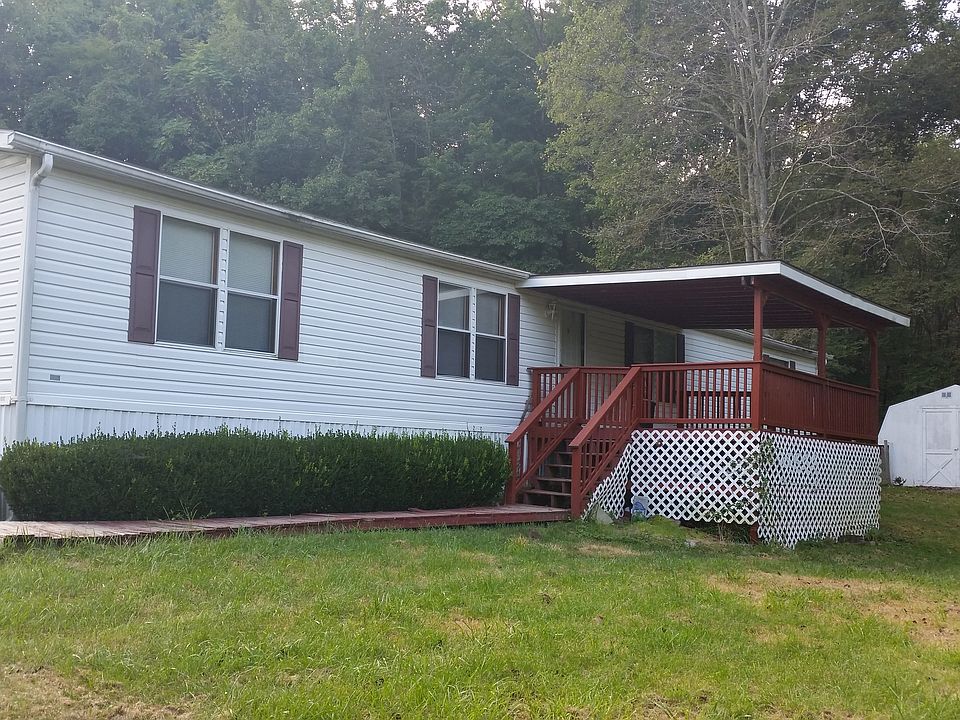Home has 3 bedrooms, 2 full baths, laundry room, eat-in kitchen with island, family room, living room, dining room. Covered porch. Large shed. Beautiful lot with stream. Very private. City water and sewer. Gravel driveway. Parking area. Pole with security light. Gas heat. Central AC. On blocks. As is sale. Great location. 3 miles to Ruby Hospital or 68. Excellent schools. Zestimate is 197,000. Asking 191,000.