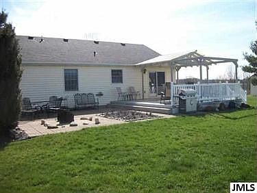 Large open floor plan with cathedral ceilings. Long, stately, cement driveway. 2 pole barns, one heated and finished. Kitchen has granite counters, marble backsplash, with island seating open to dining. Fireplace. Patio doors lead to covered outdoor living on composite decking and patio stones. Master suite has large closets. Finished basement has family room, bathroom, bedroom egress window, lots of storage. Main floor laundry & mudroom.
