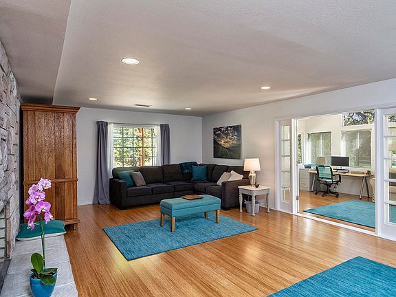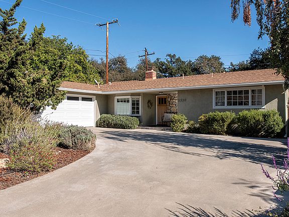 This beautifully remodeled ranch-style home is desirably located next to the Daly Ranch Park with a gate from this property into the Park. The large open living room with its wood-burning stone fireplace leads to a windowed sun room and patio with views of the Park. The drought tolerant gardens of the enclosed yard include mature pomegranate, grapefruit and guava trees. A remodeled and carpeted Master en suite and guest bedroom each have a shower/bath combo and travertine floors. Bamboo hardwood floors, dual pane windows, recessed lighting, central air conditioning/heat, new roof and Trex decking in 2010, ceiling fans, stainless steel kitchen appliances and two-car garage with storage are just some of the features of this appealing home.Closely located to downtown Ojai's shops.