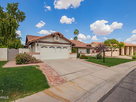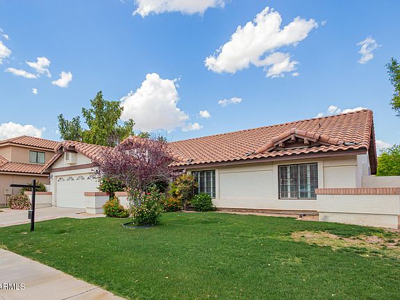 Welcome to your dream home! This charming 3-bedroom, 2-bath residence boasts soaring vaulted ceilings and an open, airy layout. The beautifully remodeled kitchen features elegant shaker cabinets, luxurious granite countertops, and stainless steel appliances, perfect for culinary enthusiasts. Enjoy meals in the formal dining room or the inviting eat-in kitchen. The home also offers stunning travertine tile floors throughout, enhancing its modern appeal. Step outside to discover a large yard with an expansive patio, perfect for entertaining or relaxing, surrounded by mature trees and garden beds. The lush front and back lawns are great for outdoor activities, while the front yard is maintained by the HOA for hassle-free living. With a spacious 2-car garage and ample storage, this home is both functional and stylish. Don't miss the opportunity to make this lovely property your own!