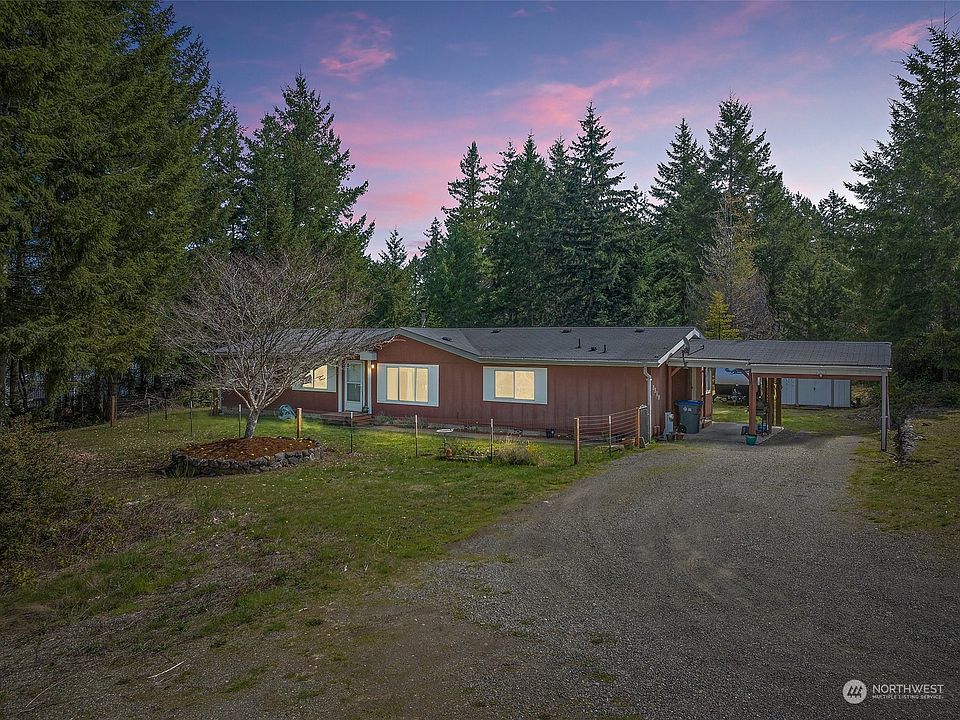 This charming property boasts a well-maintained 3 bedroom layout, plus a bonus room, and is situated on a peaceful road with only four other lovely homes. It has been updated both inside and out, featuring Hardi Plank siding, composite decks, butcher block countertops, and upgraded bathroom fixtures. The kitchen comes equipped with an eating bar, while the private master suite offers a relaxing retreat. Enjoy cozy evenings in the living room complete with a wood stove for warmth. Outside, you'll find plenty of room to roam, as well as a 8x14 shed with power, covered deck, and RV parking with power. This lovely property is conveniently located near lakes, The Hood Canal, and provides a short commute to town and military bases.