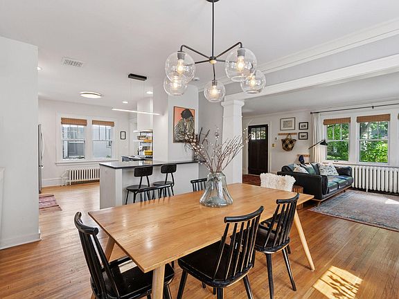 Beautifully updated two-story blends timeless charm with modern style in one of St. Paul’s most sought-after neighborhoods. The heart of the home is a stunning open-concept kitchen, completely redesigned in 2021 with a spacious breakfast bar. The layout flows seamlessly into the dining and family rooms, creating a bright, airy main level. Step in from the welcoming front porch to find a cozy living room, formal dining with built-in buffet, and a sunny family room surrounded by windows. A main-floor half bath adds convenience. Upstairs offers three bedrooms, including a generous primary with great natural light and a full tiled bath. The finished lower level features a relaxed family room, dry bar, laundry, and storage. Outside, enjoy a deep backyard with paver patio, green space, and a two-car garage—ideal for entertaining or relaxing. Updates include a new roof (2022), hardwood floors, storm windows, and central air. Just steps to Grand Ave’s shops, cafés, and restaurants.