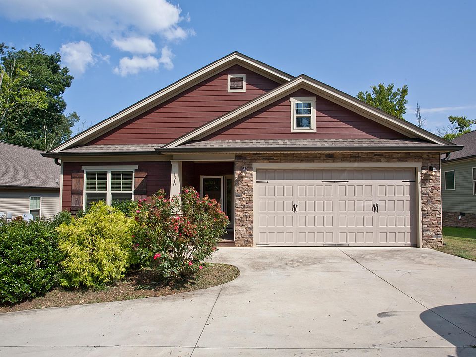 Meticulously maintained one-level Craftsman style home in desirable Huntley Gates area. Minutes from Hamilton Place and I-75. The front yard features permaculture-inspired landscaping, while the back porch overlooks greenspace with a spectacular view of the woods. The two bedrooms and full bath at the front of the home ensure privacy for the oversized Master Suite. The open concept kitchen overlooks the living area allowing space to live and entertain. Upgrades include granite in kitchen and bathrooms. There is also a two car garage. Zoned for East Hamilton schools. Don't miss your chance to live in the heart of East Brainerd!