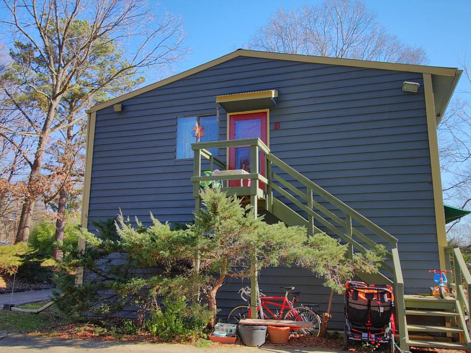 Unique passive solar condo conveniently located near Downtown Durham and Duke University! Nestled among mature trees and greenery, the condo feels miles from the city when in fact it's just blocks from the Durham Bulls Athletic Park and the American Tobacco Campus. Only 2 minutes to the Durham Freeway, 5 minutes to Duke and literally just feet from the American Tobacco Trail! Built in the mid-80s by a local architect, this 2 bedroom, 1 bath condo is extremely efficient with utilities capping out around $50/month! In the winter, the home's brick floors store the sun s heat that shines through the large south-facing windows while exterior awnings block the sun s rays during the summer months. Insulated windows, extra wall and roof insulation, and a solar hot water heater round out the condo's green design. Nice sized living area flows through the cozy breakfast nook and connects to the home's kitchen, complete with ample cabinet storage and open shelving and dishwasher. Master bedroom has large closet and ceiling fan. Outdoor storage space is open to residents with dedicated area for each unit. Water, landscaping, trash/recycling are included in rent. Unit comes with washer and dryer. Pets are allowed with approval and fees--max of 1 dog or 2 cats. Two dedicated parking spaces per unit. If you'd like a tour of these one-of-a kind green condos, please let us know! We'd love to show you around.