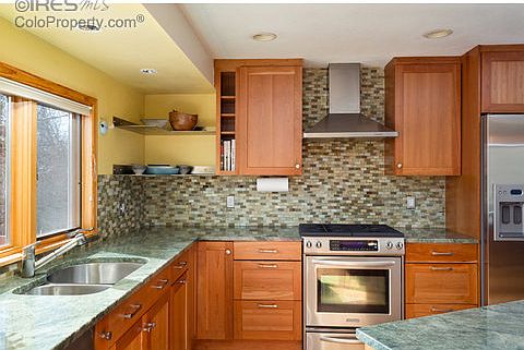 Updated home w/ stunning views of Flatirons & natural light. Kitchen featured on Kitchens on Fire tour w/ ss appliances, dual fuel gas range/oven. Beautiful oak hardwood floors upstairs, new bamboo floors & carpet downstairs, updated bathrooms, double pane windows. Newer roof & hot water heater. Fenced yard w/ mature landscaping, fruit trees, planters, irrigation system, deck, new storage shed. Walking distance to great schools, shopping, parks, trails, bus stop & playgrounds. Byr to vrfy sqftg