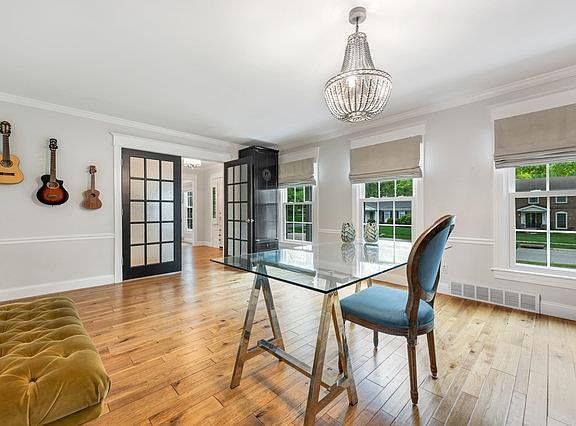 - Kitchen Island, Custom Cabinetry, Eat-in Kitchen, Pantry, Solid Surface Countertop(s), Separate Dining, Double Vanity, Tub