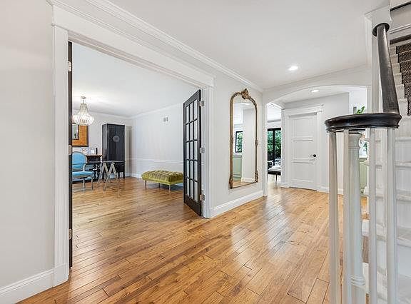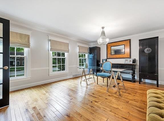 - Features: Floor Covering: Wood, Wall Covering: Some