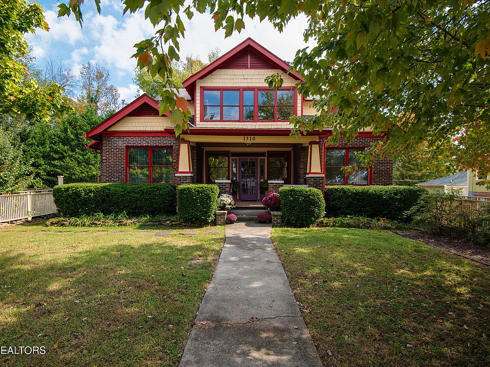 Introducing 1310 Luttrell Street, an exceptional brick Craftsman bungalow built in 1910, situated on a rare combined lot yard totaling approximately 0.4 acres in the heart of the Fourth & Gill Historic District. This distinguished neighborhood, listed on the National Register of Historic Places, first flourished as a tree-lined streetcar suburb in the late 19th and early 20th centuries, reflecting Knoxville's expansion and industrial growth following the Civil War.
