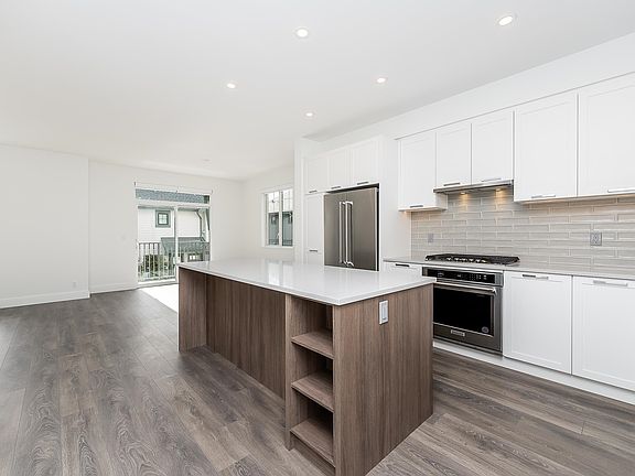 Welcome to this brand new, corner townhome at Forester II by Townline! This home offers 3 beds, 3 baths and 1,588 sq ft of bright and airy living space. On the main, enjoy a wide plan with a well-designed kitchen w/large island, USB chargers, gas cooktop and quartz counters. Generous living + dining seamlessly lead to a SOUTH facing balcony spanning nearly the width of the home. Up are 3 beds, primary fits a king with a WIC and spa-inspired ensuite. Thoughtful features include whisper grille rough-ins for portable A/C, closet organizers, flat-finished ceilings, finished side-by-side garage w/epoxy floor, EV rough in. Resort-style amenities include an outdoor pool, yoga studio, fitness centre, games room/ social lounge. Walking distance to schools, trails and future Burke Mountain Village.
