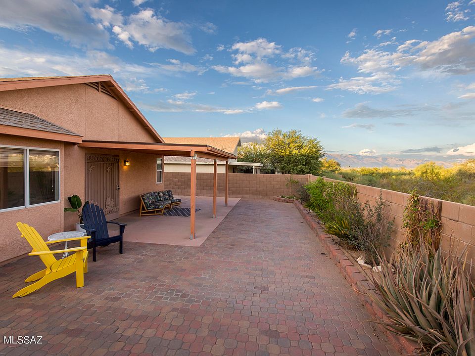 Beautiful west side home in the hills! Move-in ready and well maintained, featuring high ceilings, a brand-new back patio with pavers all around, easy-care landscaping, and open-sky sunset views. No carpet inside and no neighbors behind--this property backs to open natural space for added privacy. Located in a quiet, friendly community of just 95 homes with an HOA of only $19/month. Conveniently situated west of Silverbell and north of Speedway, near Pima Community College West Campus, the University of Arizona, hiking trails, Starr Pass, bus stops, shopping, restaurants, and more. A fantastic value in a desirable location!