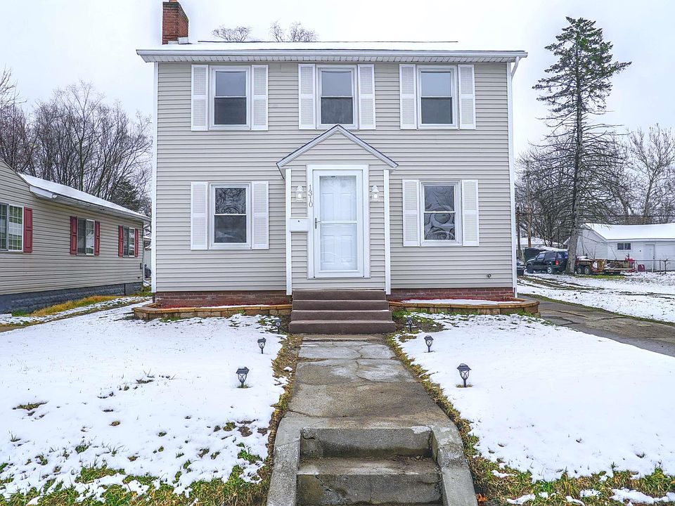 Welcome to your dream home! This stunning 2-story, 3 bedroom, 1 bathroom home with an oversized 2 car garage, has everything you need to live in comfort and style with so much added character and charm.  New Energy Efficient Furnace and Central Air, New Vinyl Siding & Shutters, New Roof 2 years ago, newer water heater. As you step inside, the new vinyl flooring & fresh paint throughout, provides a modern and stylish look that is also durable and easy to maintain. New vinyl windows throughout the house provide plenty of natural light and energy efficiency. On chilly evenings, cozy up next to the wood-burning fireplace in the spacious living room, or bask in the warm glow of new recessed lighting & beautiful new lighting fixtures. The completely remodeled kitchen boasts beautiful shaker style cabinets, new countertops, and custom tile flooring. New stainless sink, faucet & brushed nickel accessories. Stainless steel appliances including a new side-by-side refrigerator, range, and built-in-microwave complete the sleek, modern look. Beautiful formal dining room with tons of light coming through the new, French Style Patio doors that exit onto the large deck that overlooks the backyard.  The bathroom is equally impressive, with beautiful new flooring and a custom tile tub surround with a deep soaking tub, new toilet, vanity & brushed nickel faucets and accessories. The partially finished basement features a newly added family room, complete with new drywall, paint, lighting, plush carpeting & new windows. Home has new doors throughout. New electrical fixtures, outlets, & some plumbing.  make this home move-in ready. Large 2-car garage  has new vinyl siding, roof, sofits & security lighting, with a long driveway for extra parking. Beautiful curb appeal with the new landscaping, new exterior lighting & finishes. Schedule your showing today!