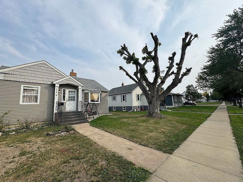 This house features a great view of the Yellowstone River right across the street. The basement is currently unfinished with a working laundry room, but does have all the plumbing for a bathroom and enough room to make 2 full bedrooms with a walk in closet, along with another living room. Carpet upstairs was recently removed in July to have hard wood floors. The house also offers a fireplace upstairs, a sun room off the back of the house and a detached double garage. This house would be an amazing remodel with the time and effort. The house is also nearby to the park offering tennis courts, a jungle gym, the city pool, and the schools.