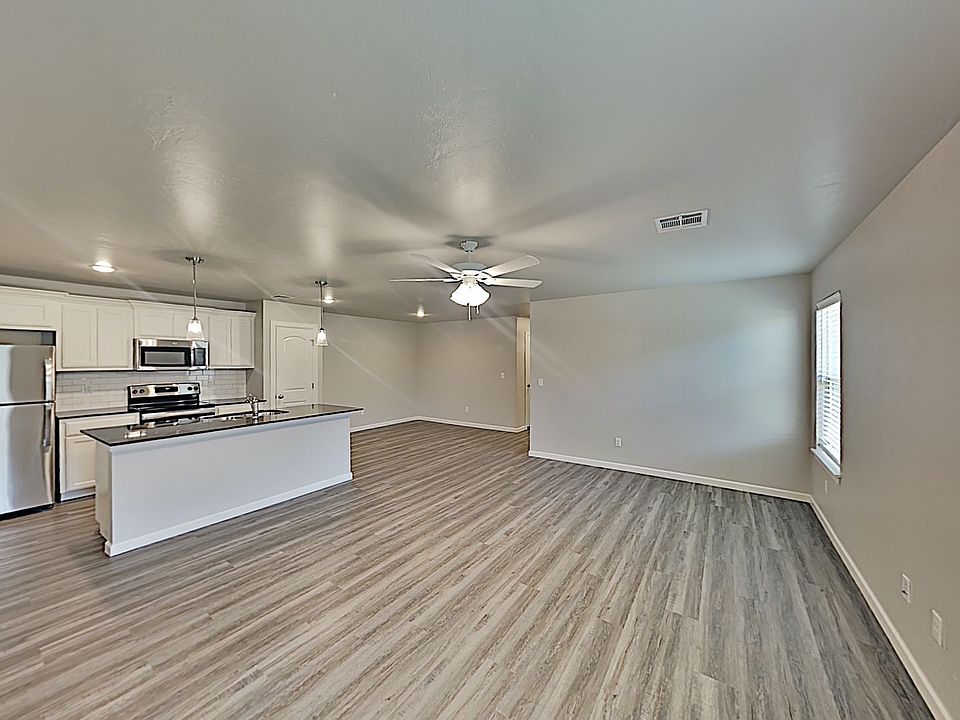 Fenced backyardWood look vinyl floorsLed lightingStone counters
