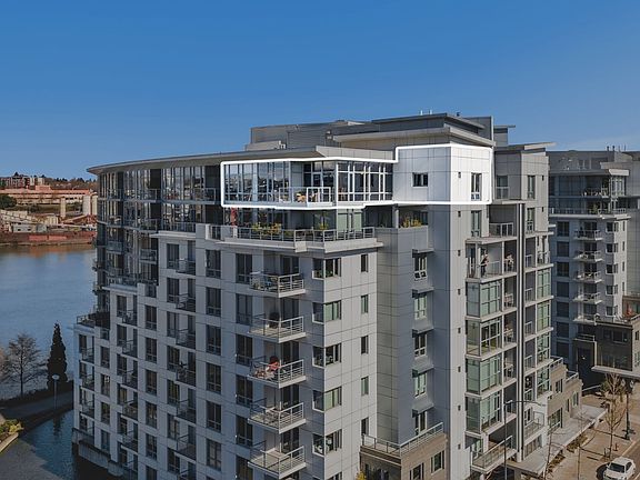 Top floor NW corner Penthouse on the Willamette River in Portland's Pearl District. Enjoy sweeping views of the river, Fremont Bridge, and the cityscape from floor-to-ceiling windows. Two full bedroom suites + additional powder room gives flexibility for hosting guests. Features included: 2 decks, hardwood floors, gas fireplace, heated floor in primary bath, Viking appliances, wine fridge, 2 deeded parking spaces with EV charger installed, and extra large storage unit. Building amenities include: outdoor common area, gym, sauna, and 24-hour concierge service
