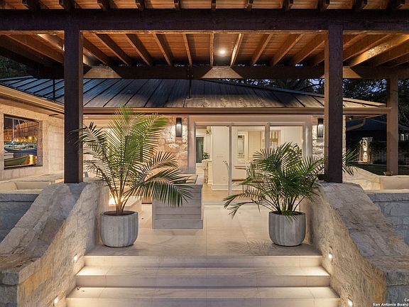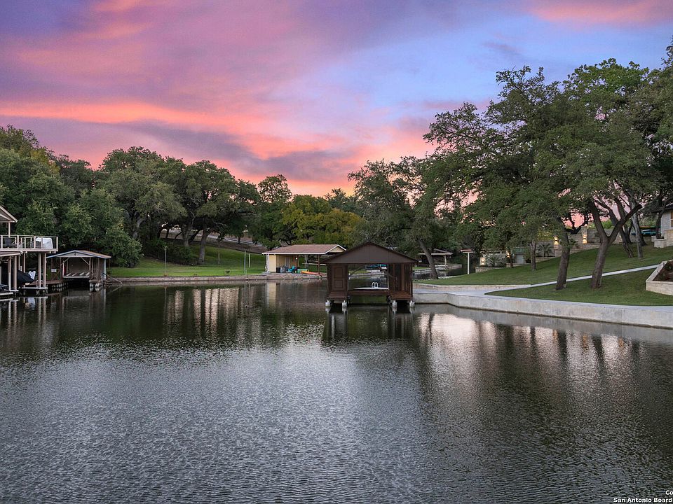 A rare blend of effortless lake living and refined Hill Country design, this oak-studded, constant-level waterfront retreat offers year-round enjoyment and polished everyday comfort on nearly half an acre of serene shoreline. Smooth-water access to iconic Lake LBJ meets a shaded, park-like atmosphere, encapsulated with privacy-lush, cool grass beneath a mature canopy that keeps summer days blissfully comfortable by the shore. Completely reimagined for timeless appeal, this Hill Country Contemporary Cottage frames sparkling water views and flows seamlessly between indoor and outdoor living spaces-each anchored by its own fireplace for intimate evenings or lively weekends. The expansive chef's kitchen serves as the home's elegant heart, blending refined finishes with an inviting open-concept design. The family room's warmth is tangible, framed by a vaulted tongue-and-groove ceiling, exposed beams, and hand-scraped hardwoods underfoot. Three inviting guest bedrooms are each wrapped in classic shiplap detailing, while two luxurious baths showcase floor-to-ceiling marble. The outdoor cabana becomes an entertainer's haven-an alfresco living room complete with a glowing fireplace and tranquil water views. A detached carriage house offers versatile functionality off the tiled entryway, ideal for guests, hobbies, or creative workspace. The grounds are exceptional-dotted with heritage oaks and gently sloping to the water's edge, where a cascading waterfall encircles a glowing firepit beside a covered boat slip, ready for all types of watercraft in a supremely calm cove. A truly one-of-a-kind waterfront haven that pairs refined design with an unmistakable sense of serenity and "home." Perfectly positioned near Wakepoint and Kingsland's favorite dining destinations, just minutes to H-E-B and under an hour to Austin.
