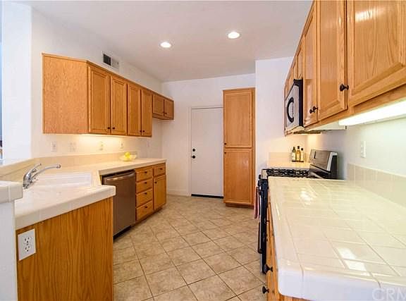 PLEASE WATCH VIRTUAL TOUR. Don't miss this GATED community move-in ready 3 bedrooms and 2 1/2 home in the lovely gated Parkside community. High ceilings and plenty of windows throughout for a bright and airy feel. The newly painted living room has a fireplace for cozy relaxation, and the open kitchen has recessed lighting, plenty of pantry space, and a breakfast bar. The private patio is perfect for entertaining and play. The large master bedroom has both a walk-in closet and wall closet. This home is designed for everyday living, with an attached two-car garage, indoor laundry hookups, and no carpet throughout for easy floor maintenance. New air conditioning/heater system has been installed. The complex has a pool and spa and is located near shopping, schools, beaches, and more!