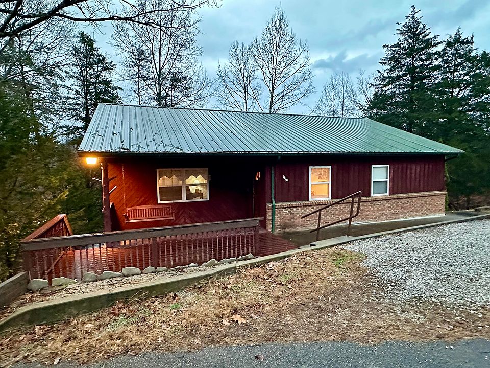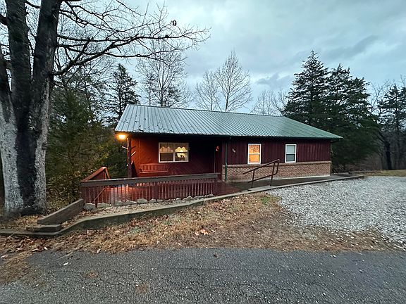 Escape to your own cabin-style retreat near Lake Cumberland and Burnside Marina. This wood-sided home with a green metal roof sits in a private, wooded setting that feels like a getaway but keeps you close to the lake, marinas, and town amenities. Ideal as a fishing cabin, weekend lake house, or full-time home for anyone craving a slower pace of life. The main level offers an inviting open-concept layout with vaulted ceilings and warm wood accents in the living room, dining area, and kitchen. A propane fireplace adds cozy ambiance and backup heat on chilly evenings. The kitchen features oak cabinets and flows into a breakfast nook/dining space and living room with plenty of room to relax. Two bedrooms and a full bath with a stacked laundry center complete this level. The home is being sold fully furnished so you can start enjoying it right away: queen beds with new mattresses, living and dining furniture, and pots, pans, and dishes all remain. The lower level has a second living area, bedroom, full bathroom, and a kitchenette space that just needs appliances. This area has barely been used and, with a few finishing touches, could make an excellent guest suite, separate rental unit, or extra space for family and friends. Outside you'll find a small back deck with peaceful wooded views, perfect for grilling or morning coffee, plus a circle driveway in front and a separate side drive leading to a covered one-car carport and the basement entrance/stairway to the main level. Come see how comfortable lake-area living can be at 1310 RL Colyer Rd.