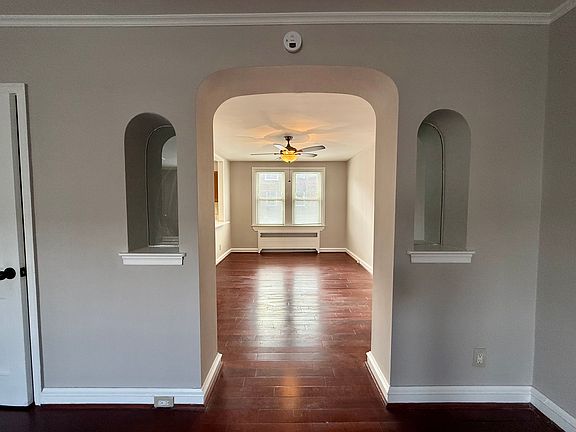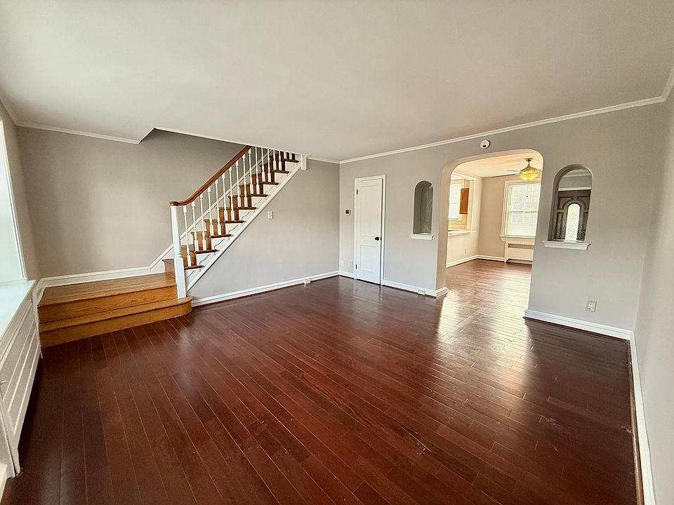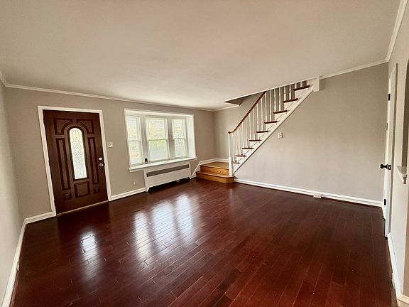 Welcome to this well maintained 3-bedroom 1.5 bath rowhome located in the Oxford Circle section of Philadelphia. Property has freshly painted walls and trim with wood laminate flooring throughout. Open concept living area is inviting with built in arched wall shelving. Kitchen features wood cabinetry, tiled floors and , ample counter space . Bedrooms are comfortable standard sized. Lots of closet space t/o property. Tiled bathroom with a tub/shower combination and a wooden vanity sink with mirror. Large basement with wood paneled walls . Perfect for additional living space or extra storage. Front yard, perfect for gardening. Private driveway in rear of property.