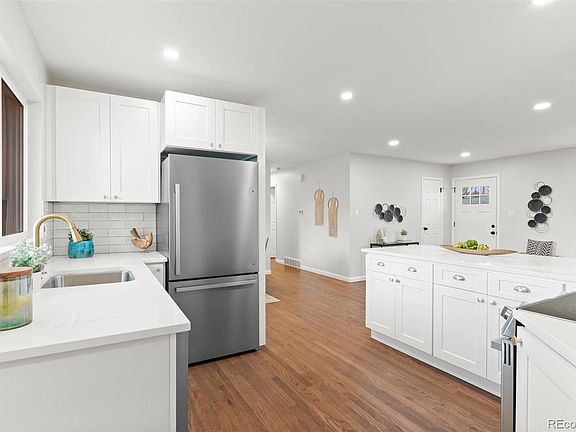 Stunning Lakewood remodel! This brick ranch home sits on a large lot boasting updates throughout. The newly renovated 4 bed, 3 bath home showcases an open floor-plan, hardwoods on the main level, primary bedroom suite, bonus 5th room perfect for an office, 2 car garage, white shaker cabinets, stainless steel appliances, and quartz countertops. Updates include the kitchen, bathrooms, refinished hardwoods, carpet, interior and exterior paint, light fixtures, doors, and windows. The backyard has a covered patio and large trees along the fence line making it feel secluded and perfect for entertaining. With its proximity to Belmar's renowned shopping and dining options, you'll have endless entertainment possibilities right at your doorstep. Don't miss out on this incredible opportunity to own a beautifully remodeled home in a highly sought-after location!