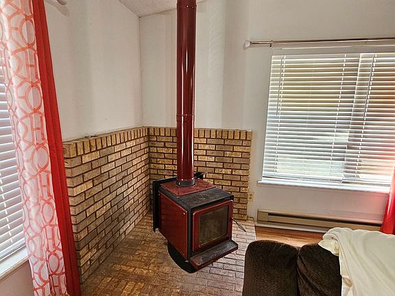 Wood burning stoveGalley kitchenOpen and airyCeiling fansNewer flooringPlenty of cabinetsCatedral ceiling