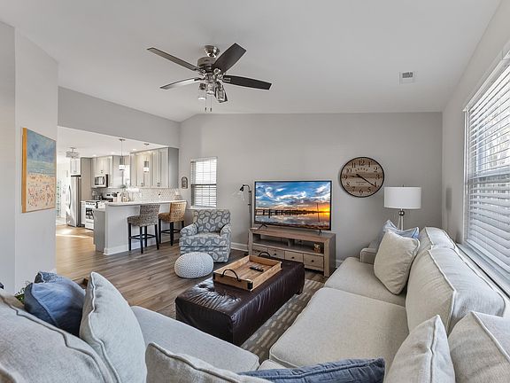Prepare to be captivated by this breathtaking, completely renovated (2022) three-bedroom, 2.5-bath twin home, nestled in the enchanting Village Green section of Cape May. A masterpiece of exceptional style and unparalleled craftsmanship, this home offers an exquisite turn-key experience, coming fully furnished with luxurious décor that transforms it into the ultimate beach sanctuary. Step inside and be swept away by the grandeur of the open concept living room, where soaring vaulted ceilings and an abundance of natural light create an inviting atmosphere. The seamless flow between spaces is perfect for hosting unforgettable gatherings. The chef-inspired kitchen is nothing short of spectacular, featuring stunning cabinetry, an eye-catching tile backsplash, and premium appliances that elevate every cooking experience. Throughout this magnificent home, you'll find impeccable luxury in every detail—from the rich vinyl plank flooring to the soft, plush carpeting in the bedrooms. Every room is adorned with high-end finishes that exude sophistication. The primary bedroom is a true retreat, offering a private, spa-like en-suite bathroom with decorative tile work and a sleek glass shower door. Two additional guest bedrooms share a beautifully designed hall bath with a deep soaking tub, creating an atmosphere of serenity. A stylish half bath is conveniently located for guests. Step outside to discover the expansive back deck and yard, an idyllic space for peaceful relaxation or lively BBQ gatherings. The convenience of an outdoor shower enhances your coastal lifestyle. With ample attic storage and a location just minutes from Cape May's best beaches, premier bars, and top-tier restaurants, this home is the epitome of coastal luxury. This is more than a home—it’s the ultimate seaside retreat. *There is currently one lease in place 8/2/25-8/9/25 $3850