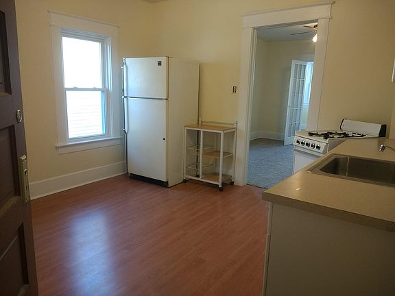 Clean updated Upper Apartment includes six rooms plus bathroom- (Kitchen, LV, 2 bedrooms, front room, utility/pantry room) . Amenities include Gas stove and refrigerator, Off Street Parking, Attic storage, laundry hookups in shared basement, fenced in backyard. Located across for large park/baseball field.