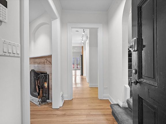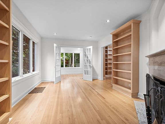 Welcome to this charming four bedroom, three and a half bath home nestled in a quiet, quaint, tree-lined neighborhood in highly sought-after Dewey School District. A deceptively small front exterior opens to a spacious, well laid out and flexible floorplan with over 2200 square feet of living area plus 1800 square feet of amazing finished basement space. Enter the living room to find an abundance of light, woodburning fireplace with pretty surround and mantel and the start of a fabulous circular layout throughout the first floor. Walls of windows and built ins fill the sunroom. The more formal dining room with stunning wood bookshelves, where you can settle in with a good book or entertain in style, flows into an expansive open kitchen boasting an over sized island for seating, abundant cabinetry, stainless steel appliances, and plenty of flex room to set up an additional eating space or family room. There is also a walk-in pantry, mudroom and powder room adjacent. The final touch to the main floor is the over-sized deck off the back overlooking the pretty, landscaped yard and two-car garage in the rear. A built-in bench for seating and plenty of room for entertaining or all your grilling needs and wants. The second floor offers all four bedrooms. The en-suite primary abounds with windows, offers a small nook for a desk or reading area, yoga, a big walk-in closet and bath with subway tiled shower. A washer and dryer and second full bathroom round out the top floor. The basement includes the third full bath, additional storage, a recreation room with shelving and a projector for a perfect movie night, a studio/solarium where you can hold a yoga class, see clients through the separate entrance, do your preferred craft and then work your way into the fitness room for your end of the day workout. A few blocks to Dewey and minutes to cafes, shopping, coffee, NU and public transportation. Don't miss out on this beauty!