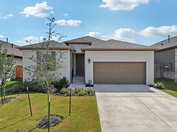 Enjoy peaceful suburban living surrounded by the picturesque Texas countryside in Turner's Crossing. Custom crafted by Taylor Morrison in 2024, this single-story home offers the desirable Auburn floor plan with three bedrooms, plus a home office, 2.5 bathrooms, and an airy open layout. Natural light fills the main living space, where a12-foot pop-up ceiling, recessed lighting, and wood-look vinyl plank flooring create a clean, contemporary feel. The stunning gourmet kitchen centers around a quartz-topped island, with upgraded built-in stainless steel appliances, timeless cabinetry, and a built-in buffet along the dining area for extra storage and entertaining. The primary suite offers privacy and space, with a large ensuite bath, dual vanities, and a walk-in closet that connects directly to the laundry room. Two secondary bedrooms and a full bath sit near the front of the home, while the office—with French doors and quiet seclusion—rests near the garage entry. Step outside to a covered patio and fenced backyard with ample room for outdoor living or future enhancements. Turner's Crossing offers amenities including a pool, playground, trails, and access to Hays CISD schools. Located just south of Austin in the burgeoning Central Texas corridor, Turner's Crossing North offers quick city access with its convenient location near I-35 & the 45 toll. Just 5 miles to HEB in Buda, 15 miles to Downtown Austin, and 21 to San Marcos—this home strikes the right balance of comfort, style, and location. Schedule a showing today!