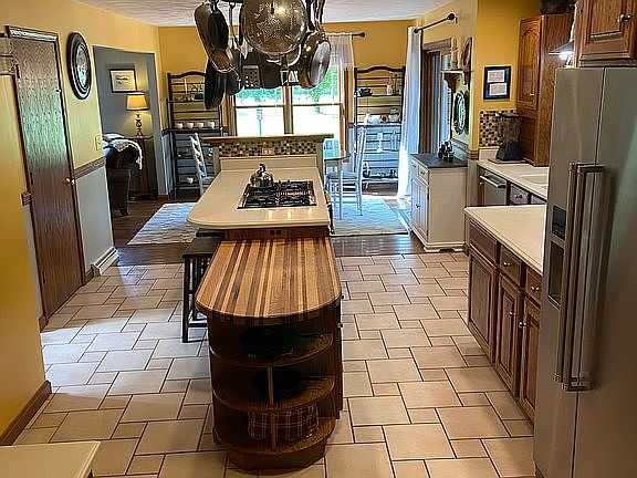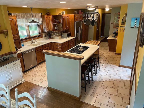 Custom built, 4 bed, 3.5 bath home nested on 20 wooded acres. Open concept home with plaster walls, 2x6 construction, Marvin windows, new roof on all buildings (2019), and solid hardwood and tile throughout. A gourmet kitchen, overlooking the back yard and deck, has an 11’ island with seating, tons of cabinets and new SS appliances. Corian and butcher block countertops, gas range with downdraft and two pantries. Main living area boasts a vaulted foyer, a wood burning fireplace, a large eat-in dining room with tons of natural light. First floor master has a large walk-in closet and an updated master bath with shower and jetted tub. Second floor has two large bedrooms, each with a dormer and attic access, sharing a full updated bath. The finished basement is a perfect guest suite, featuring a separate flex area, full bath, and a secondary family room, bringing total livable space to almost 4,000 sq ft. Bonus room above the attached garage has dedicated heating and additional attic storage. Finished two car, attached garage has mud room area, built-in storage and 8’ long high-output lights. There are also 2 additional detached garages (26x26 with loft storage, 30x50 two-story with 16’ doors and RV hookup) and a shed. All 6 garage doors replaced in 2016 with energy efficient doors. Outside, you’ll find a large entertainment area including new exterior lighting, a new 1,100 sq ft Trex deck, pavilion, fire pit and a 4-bunk tree house nestled in the woods. Professionally landscaped grounds featuring a fenced in garden, fruit trees and berries. Other features include sewer, natural gas, cable, fast internet and abundant wildlife all year long! Call to schedule a tour 814-460-7976.