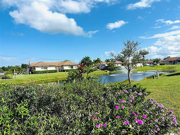 Enjoy LOW-MAINTENANCE LIVING in this 2-bedroom, 2-bath villa offering 930 sq ft of comfort and convenience. The OPEN FLOOR PLAN with CATHEDRAL CEILINGS creates a bright, airy feel, while the SPLIT-BEDROOM layout ensures privacy for you and your guests ~ A versatile BONUS ROOM provides extra space for an office, den, or hobby area. The outdoor storage room offers a secure area for your golf clubs and beach gear. From your front porch, enjoy the sunrise, as well as peaceful views of a pond with a soothing water fountain—a tranquil setting to start and end your day with your favorite beverage. Located in a quaint community with the LOWEST HOA FEES in the area, your dues cover exterior maintenance, grounds, and insurance giving you peace of mind and more time to enjoy life. Perfectly situated between Englewood, Port Charlotte, and Boca Grande, just 9 miles to GULF BEACHES / MANASOTA KEY ~ blocks to the Cape Haze Pioneer Trail offering a paved, treelined biking and walking trail ~ this home also puts grocery shopping, dining, banking, and gas stations right around the corner. Take advantage of this opportunity today!