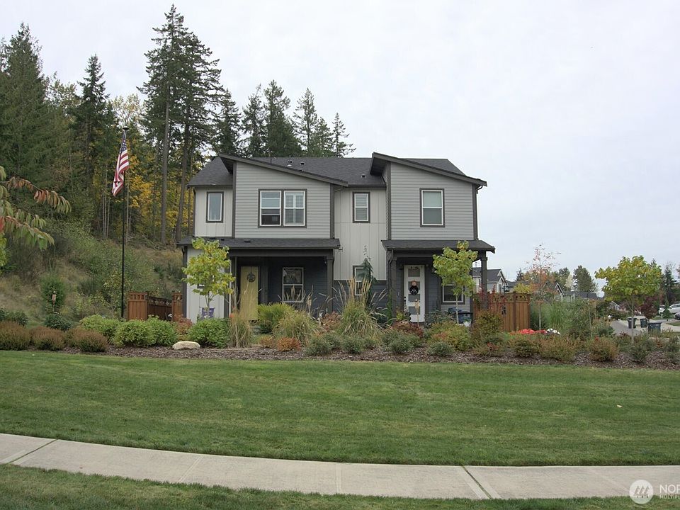 This home faces the greenbelt for privacy and enjoyment, on such a secluded lot with beautiful views in this Tehaleh 3 BR, 2.5 BA home with so many upgrades! Enjoy the front porch set way back from the road, and outdoor entertaining in privacy in the fenced side yard and patio. You see the green space, the trees, the birds and the sky. Enjoy air conditioning, 9ft ceilings, a stunning kitchen featuring upgraded cabinets, quartz countertops, a large island, & black stainless steel appliances. Endless hot water with the tankless natural gas water heater. Upstairs, the spacious large primary suite offers a walk-in closet & bath with double vanities and tiled shower. Two additional BRs, & full BA. Walking trails, dog parks, all in Tehaleh