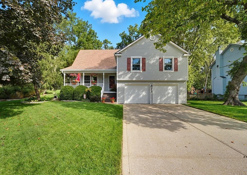 This wonderfully maintained home backs to green space and has the most beautiful low-maintenance landscaping! You can relax on the fantastic front porch, the back deck looking out to nothing but trees, or the screened-in-porch (ALL composite!), before you even head inside! Once you head in, you will see one of the two roomy living spaces with hardwood floors and a large bay window. That leads into an oversized kitchen, also with hardwood floors, a large island, tons of cabinets and countertops, and space for a dining table. Downstairs, the family room has a beautiful brick fireplace that is surrounded by shelving and cabinets. The family room, all bedrooms, and the hallway/stairs, have BRAND NEW carpet! There is a lot of fresh paint throughout the home as well. The primary bedroom has an ensuite bathroom. There are two other bedrooms on this level and one up a few stairs, that is currently being used as an office. The laundry room/half bath are just a few steps down from the family room, along with plenty of unfinished storage space. Head out back to the amazing screened-in porch with a ceiling fan and electrical for a TV. The roof is only 2 years old, the windows are all Renewal by Anderson, there are Alenco gutter guards, and the siding is vinyl. This makes for an almost maintenance free exterior! 2x6 construction too! Water softener and purifier both stay. This one owner home has been loved on and cared for through meticulus maintenance. Bring your ideas to make a few updates and come fall in love with this fantastic home!