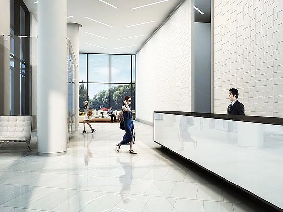 Luxury condominium unitsFirst-class amenitiesRooftop swimming poolStylishly furnished lobbyPopular retailersThree bedroom residencesFour-acre landscaped rooftop garden