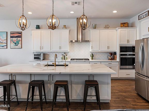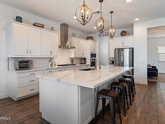 Welcome to your BEAUTIFUL practically new 4 bed/2.5 bath property featuring an inviting layout perfect for families & entertaining. Enter from your private courtyard to find a bright formal dining room. The open-concept eat-in kitchen flows seamlessly into the living spaces, creating the perfect atmosphere for gatherings. The heart of the home is the chef's kitchen, showcasing a massive center island with quartz countertops, stainless steel appliances, gas range & crisp white cabinetry with gold accents. Everyone has their own space with the den & a versatile teen area offering extra space for relaxation, study, or play. The community has easy access to the 303 & the amazing shopping/restaurants in the Prasada Shopping district. Only a few minutes from the amazing Rescue Oasis Park, Costco, TJ Maxx, Hobby Lobby, HomeGoods & Target! Hiking at the White Tanks, Luke Air Force Base, Wildlife World Zoo & I-10 are a few miles away! A trust must see home!