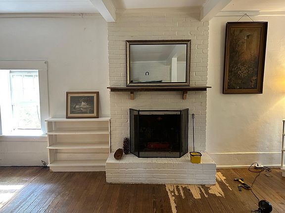 Original fireplaceFrontier cottageOriginal hardwood floorsFlagstone flooringBuilt-in book shelvesFarmhouse sinkClaw foot tub