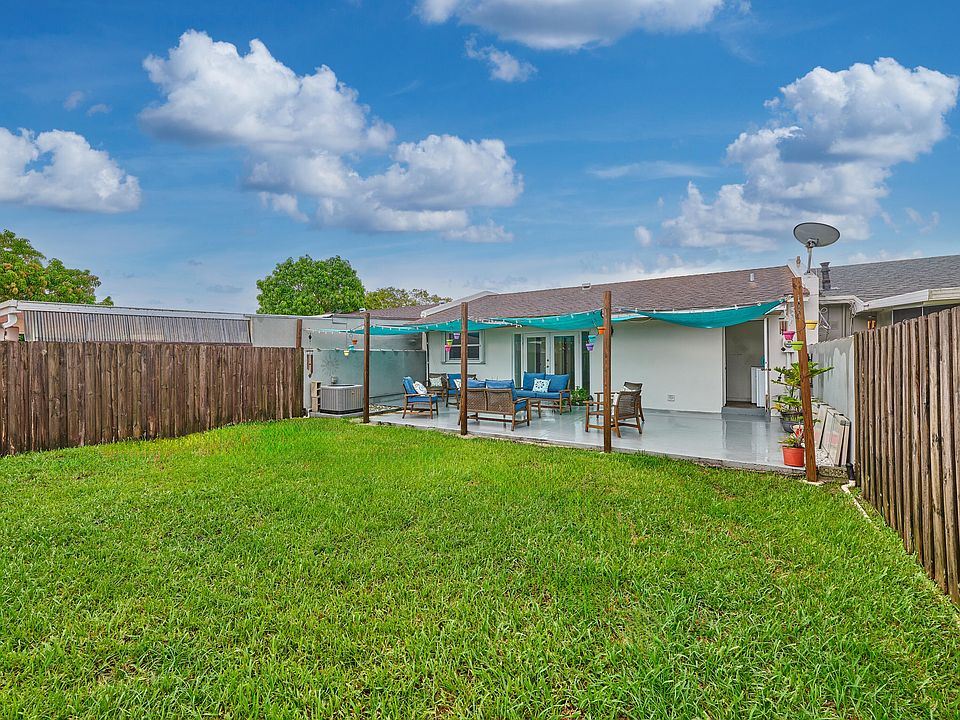 Charming Townhome w/ Expansive Backyard in Miami Welcome to this bright & inviting 3-BR, 1-BA townhome featuring brand-new tile flooring throughout. The open-concept living & dining area flows seamlessly to the spacious backyard through IMPACT French doors, creating the perfect setting for indoor-outdoor living. The kitchen offers ample cabinet space & a colorful backsplash, ready for your personal touch. Enjoy an oversized master bedroom and 2 additional comfortable bedrooms w/ generous natural light, plus a full bathroom w/ a tub/shower combo. Step outside to your private, oversized yard, ideal for entertaining, gardening, or simply relaxing under the shade sails. The large patio provides plenty of space for seating, & a storage shed adds extra convenience. Additional highlights include full home accordian shutters, fresh interior paint, ceiling fans, & a prime location close to an "A Rated" elementary school. Shopping at Dolphin Mall is less than 10 minutes away,as well as dining, parks, & major highways. With no HOA, you have the freedom to make this home truly your own. Don't miss the opportunity to own a move-in ready home w/ one of the largest yards in the neighborhood!