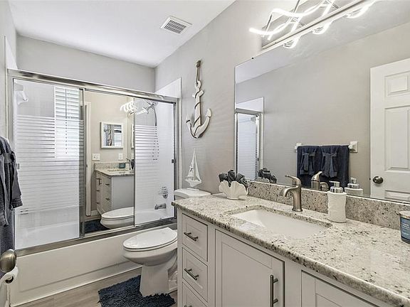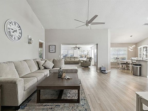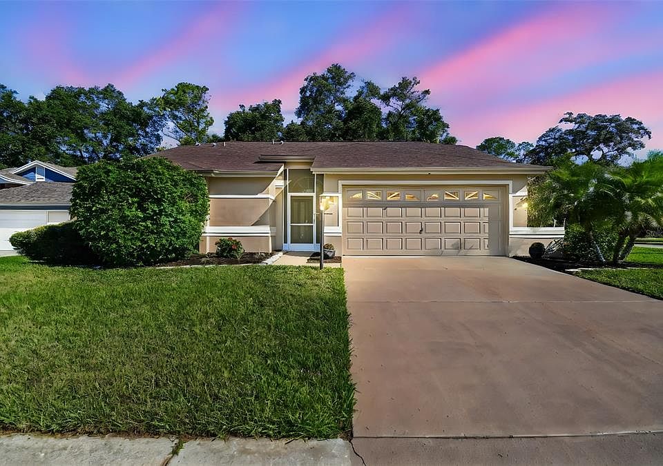 FULLY-REMODELED home, perfectly situated on a quiet CUL-DE-SAC in the sought-after Wood View at Meadow Oaks Golf Community! This beautifully updated residence features an OPEN FLOOR PLAN with soaring ceilings, recessed lighting, and matching LUXURY FLOORING throughout. The flexible layout includes a BONUS ROOM that could easily serve as a 3RD BEDROOM, OFFICE, OR DEN. The CUSTOM KITCHEN is a showstopper—complete with GRANITE COUNTERTOPS, TWO LARGE ISLANDS, STAINLESS STEEL APPLIANCES, and a CHARMING WINDOW SEAT WITH BUILT-IN STORAGE. Both bathrooms have been tastefully updated with GRANITE COUNTERTOPS and NEW VANITIES, while the PRIMARY SUITE offers a DOUBLE VANITY SINK and a spacious, comfortable design. Major updates include a NEWER ROOF (2022) and FRESH EXTERIOR PAINT (2022). Set on a CORNER LOT within the cul-de-sac, this home is just a short walk to THE OAKS TAVERN–COUNTRY CLUB and the MEADOW OAKS GOLF COURSE. Enjoy RESORT-STYLE AMENITIES including a POOL, FITNESS CENTER, TENNIS, PICKLEBALL, and an 18-HOLE GOLF COURSE. Conveniently located near SHOPPING, DINING, PARKS, and the SUNCOAST PARKWAY, offering an easy commute to Tampa. All APPLIANCES ARE NEARLY NEW (2022), making this home truly MOVE-IN READY!
