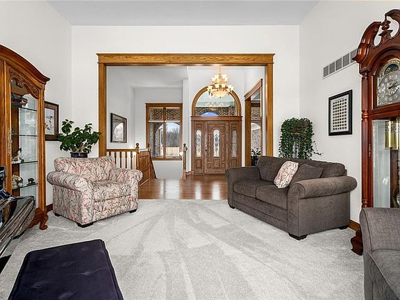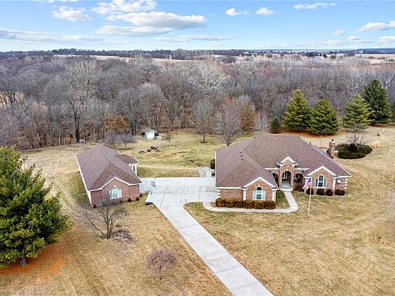 LOOKING FOR A BEAUTIFUL CUSTOM-BUILT HOME ON ACREAGE? This spacious brick ranch won't last long. It features well over 5000 sq ft of well-built custom finishings on 9.66 acres of country privacy that backs to woods and creek. Home has lots of main level living plus tons of finished space on the lower level. Main level boasts an abundance of natural light due to oversized windows throughout that look out to the natural park-like setting. Home shines with custom hardwood cabinets, gleaming wood floors and specialty trim throughout. There are 4 bedrooms on the main level plus a handy laundry room off the kitchen. Primary bedroom has a spacious private bath including tandem sinks, large walk-in closet, private shower and big soaker tub. The spacious lower-level has a wide, open floor plan that conveniently walks out to nature's backyard. Perfect for entertaining a crowd, lower-level boasts a kitchen bar, brick fireplace, wood burning stove, rec room, dining space, exercise area, non-conforming 5th bed/office AND a huge, heated workshop with outdoor access and nearby storage. BIG BONUS is the brick detached double bay outbuilding with added space for mowers and outdoor toys. Home has double water heaters and HVAC. Acreage sits in a serene natural setting near woods and creek filled with abundant wildlife. WELCOME HOME to your slice of heaven in WHITEHALL ESTATES.