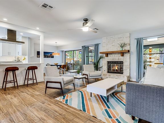 Perfectly located in the desirable Scofield Farms community in North Austin, this 4 bedroom, 2.5 bathroom home has it all. With the updated kitchen and bathrooms, first floor primary, 2 living rooms, smart home technology, an expansive covered back porch, and a large lot, this home is ready for you. The bright kitchen with modern upgrades includes stainless steel appliances, quartz countertops, an island bar, and a charming breakfast nook overlooking the front yard. The kitchen opens to the living room with a stone fireplace and dining area which leads directly to the incredible backyard. There you’ll find an oversized covered porch complete with a built-in outdoor kitchen, a fully fenced yard with mature trees, storage shed, and a garden with raised beds. An easement at the back of the property provides an additional buffer between neighbors, creating a rare sense of privacy and space. The first floor primary suite features a double vanity, walk-in shower, and large closet. Upstairs you’ll find a spacious flex/game room with a built-in window seat and bookcases for storage, three additional bedrooms, and a full bath. This unbeatable location is just five minutes to The Domain and one minute to MoPac — placing shopping, dining, and major employers right at your fingertips. This home truly delivers the best of North Austin living.
