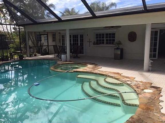 PRICED TO SELL. Large builders 1/2 acre corner lot, 4 Bedrooms 2 Bath home. New Roof (2016). Pool with newly rescreened dome and huge entertaining covered patio. Ceramic tile throughout home. French doors, electric hurricane shutters. Beautiful landscaped yard with tropical fruit trees. Large concrete slab with double gate entrance, perfect for large boat/RV. Strategic location to 874,826, Turnpike, Shopping and excellent schools.