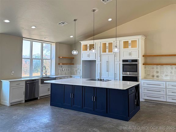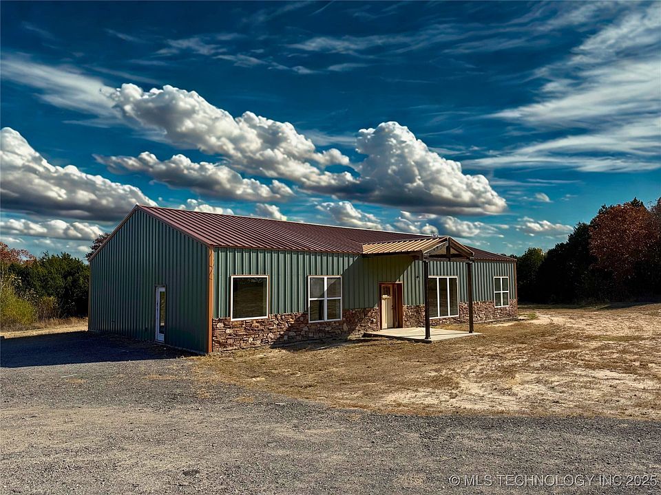 Welcome to 13106 Clay Hill Lane, a custom barndominium on five peaceful acres with another five acres available for purchase! Clean modern lines, soaring ceilings and an open concept living area create a true great room experience centered around a showpiece kitchen with oversized island, walk in pantry and double ovens. An abundance of large windows fills the home with rich natural light and provides picturesque views of the surrounding landscape. The split bedroom layout gives the primary suite its own retreat with separate walk in closets and a spa style bath that features a large walk in shower. Outside, the circle drive makes parking and guest arrival easy, with plenty of room to add a shop, pool or extra parking if desired. A tankless hot water heater and upgraded electric panels are already in place and ready for future expansion. This property is set up for growth and ready for the next owner to finish the details and enjoy the space!