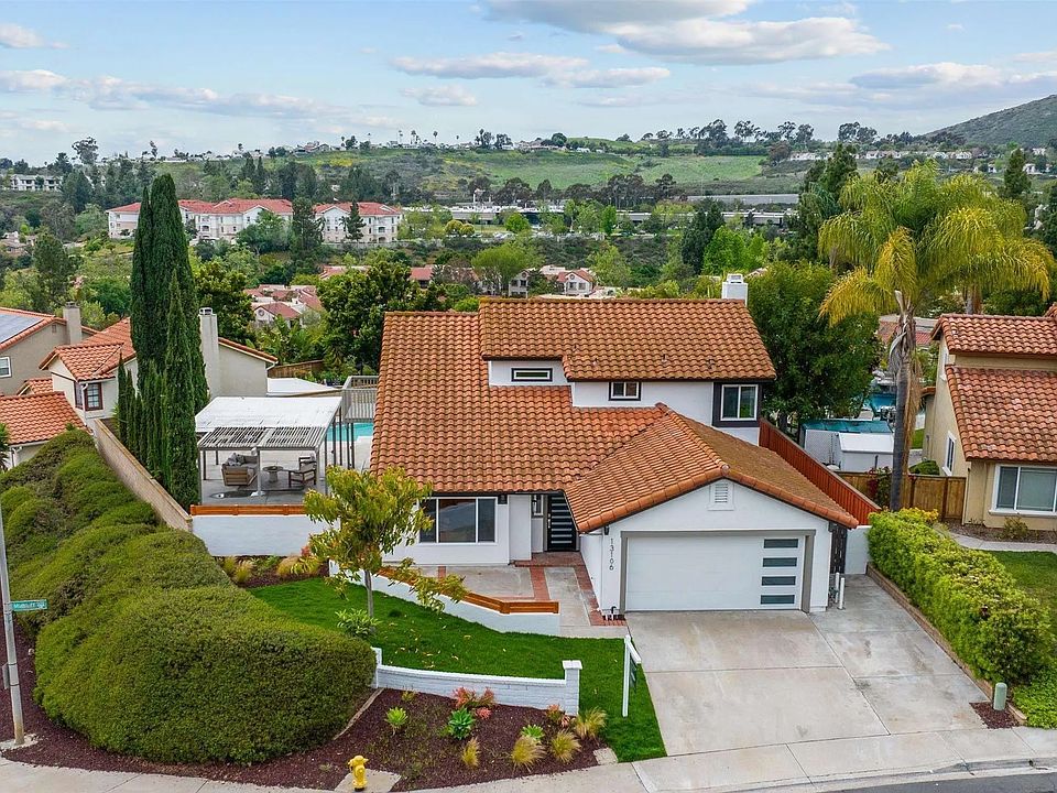 POWAY SCHOOL DISTRICT. Welcome to 13106 Midbluff Dr, a meticulously remodeled Maverick Designs home in a friendly neighborhood that offers spacious living areas filled with natural light, a modern kitchen, and a lovely backyard oasis. 2 first floor bedrooms and full bath perfect for guests. This home exudes gorgeous curb appeal, as you step into the door you are greeted with high ceilings and an inviting floor plan. Seamless transition between indoor and outdoor living makes this home an entertainer's dream. Low maintenance backyard with covered patio and sparkling pool. Prime location. Detached bonus room perfect for private office or home gym! Located in a highly sought-after school district known for its excellence in education, many will appreciate the proximity to top-rated schools and numerous extracurricular opportunities. With convenient access to shopping, dining, parks, and major highways, this property combines suburban tranquility with urban amenities. Don’t miss the chance to make this charming residence your new home!